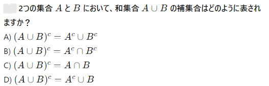和集合 A∪B を表す正しい説明はどれですか?