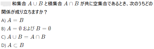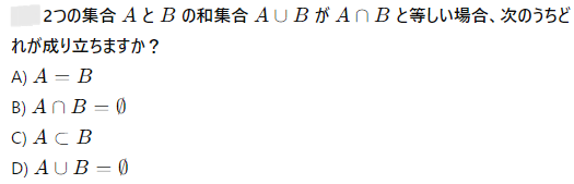 和集合 A∪B と積集合 A∩B の違いを説明する正しい選択肢はどれですか?