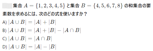 集合 A={1,2,3} と集合 B={2,3,4} の和集合 A∪B はどのようになりますか?