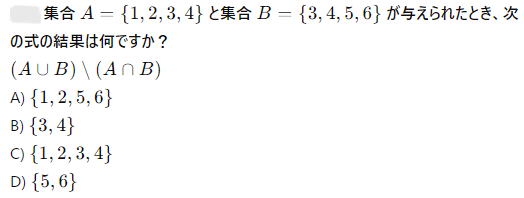 集合 A={1,2,3,4} と集合 B={3,4,5,6} の積集合 A∩B はどれですか?