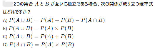 2つの集合 A と B が互いに排反であるとき、次のうち正しいのはどれですか?