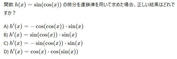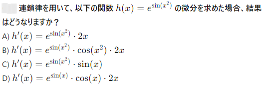 以下のうち、連鎖律を適用した微分の順番として正しいものはどれですか?